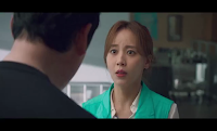Dokter Han melepas seragamnya, lalu duduk di kasur. Hye Jin sontak kaget. Dokter Han menyuruh Hye Jin duduk disampingnya. Hye Jin membeku. Dokter Han berdiri dan memeluk Hye Jin lagi. Hye Jin yang sulit bernapas karena dipeluk terlalu erat, mendorong Dokter Han lagi.